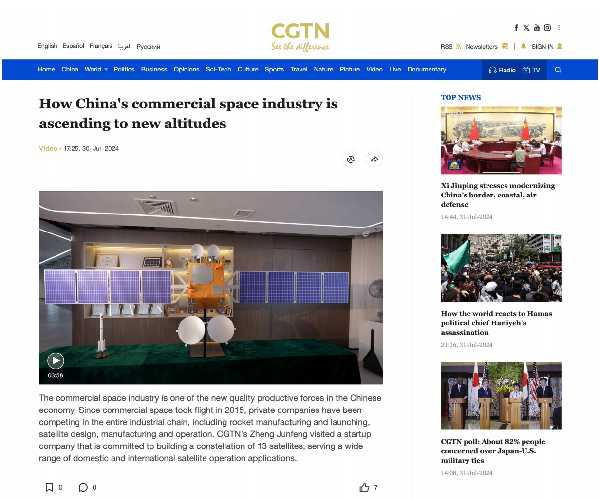 媒体聚焦 | 苍宇天基全球能力发布会获人民网、新华网、央视网、光明日报、中国日报、中国新闻网、CGTN等主流媒体广泛报道!